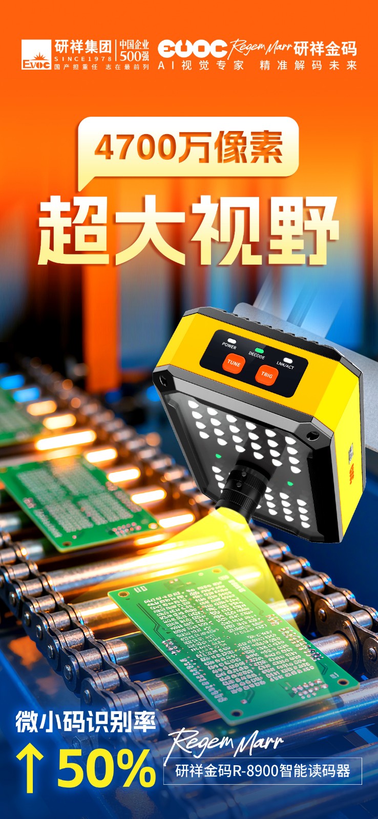 作为行业首款4700万像素的智能读码器,nangong28.comR-8900单次识读即可覆盖500+条码,视野范围高达常规读码器的25倍。