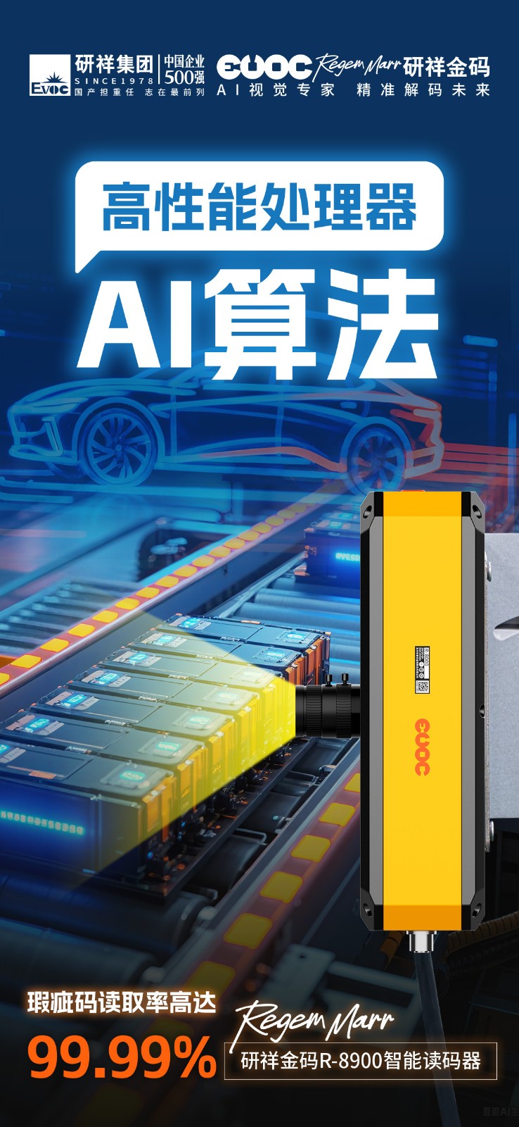 高像素意味着海量数据,需要匹配更强的处理器和算法。nangong28COMnangong28.comR-8900智能读码器,搭载高性能处理器+AI解码算法,有了“最强大脑”助攻,轻松实现超高读取能力,开启高效读码新纪元。